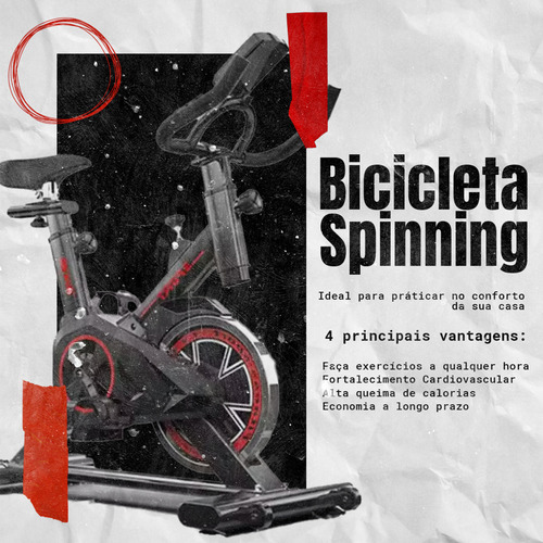 Bicicleta Ergométrica Spinning Mecânica – Ideal para Treinos em Casa Transforme sua rotina de exercícios com a Bicicleta Ergométrica Spinning, perfeita para quem deseja praticar atividades físicas no conforto de casa. Esse equipamento proporciona uma experiência completa de treino aeróbico, ajudando a fortalecer músculos, melhorar o condicionamento físico e queimar calorias de forma eficaz. Veja os principais benefícios dessa bicicleta de spinning: Características e Benefícios: Suporta até 100kg: Estrutura robusta e resistente, ideal para diferentes perfis de usuários. Altura recomendada: até 1,78m: Perfeita para pessoas de estatura mediana, com ajustes personalizáveis para garantir maior conforto durante o exercício. Roda de inércia de 4kg: Garante uma pedalada suave e fluida, proporcionando treinos intensos e eficientes. Ajustes de conforto: Inclui regulagem de altura do acento, do guidão e do peso da roda, para que você possa personalizar o equipamento de acordo com suas preferências. Painel multifuncional: Controle facilmente seu treino com o painel que exibe informações importantes como tempo, quantidade de pedaladas e calorias queimadas. Exercício completo: Essa bicicleta permite o fortalecimento de várias partes do corpo, como abdômen, pernas e braços, oferecendo um treino completo. Fácil Montagem e Armazenamento Ideal para uso residencial, a Bicicleta Ergométrica Spinning é prática e fácil de montar, além de ser compacta para armazenamento em pequenos espaços. Mesmo com um design simples, ela oferece alta performance, sendo indicada tanto para iniciantes quanto para quem já está acostumado a treinos mais intensos. Especificações Técnicas: Peso máximo suportado: 100kg Altura recomendada do usuário: Até 1,78m Roda de inércia: 4kg Ajustes: Altura do acento e do guidão, peso da roda Painel: Exibe tempo, quantidade de pedaladas e calorias Montagem: Fácil e rápida Por que investir na Bicicleta Ergométrica Spinning? Com a Bicicleta Ergométrica Spinning, você pode treinar a qualquer hora do dia, no seu ritmo, e obter os mesmos benefícios de uma aula de spinning sem sair de casa. É o equipamento ideal para quem busca saúde, bem-estar e praticidade no dia a dia. Garanta já a sua e comece a transformar sua saúde e disposição!